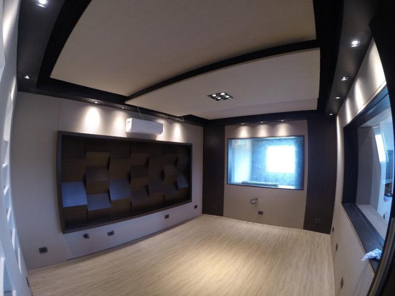 O projeto engloba, isolamento, condicionamento acústico e studio design.