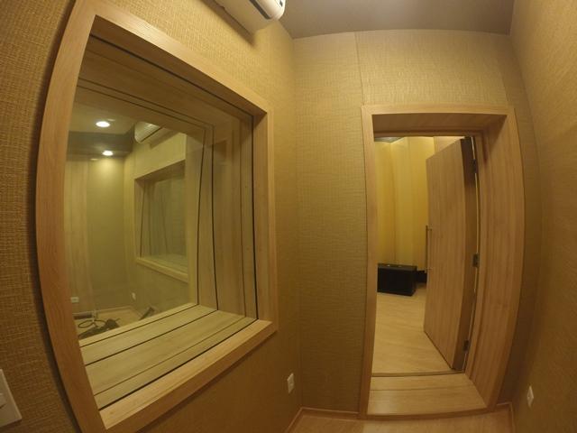 Sala técnica de mixagens, sala de gravação e sala de ensaios.